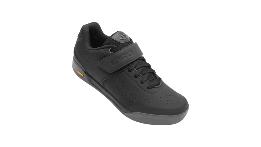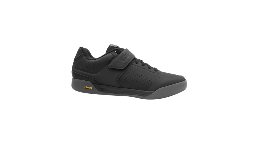 - Dreifach geformter SPD-kompatibler Schaft mit 10 mm Rückschlag (im Vergleich zum Standard Giro MTB-Schuh) Vibram® Megagrip High-Traktion-Laufsohle Optimierte EVA-Zwischensohle verbessert das Pedalgefühl und die Dämpfung. Flexible Vorfußzone zum Gehen